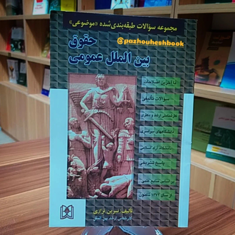 این کتاب مجموعه ای طبقه بندی شده ، متشکل از آزمون کنکورهای دانشگاه دولتی و آزاد اسلامی است که علاوه بر آن شامل سوالات پیشنهادی مؤلف در جهت تکمیل و توضیح مطالب میباشد مجموعه حاضر دارای ویژگیها و امتیازاتی به شرح ذیل میباشد : نظر به استقبال گسترده از شیوه طرح سوالات به شکل طبقه بندی شده در این کتاب نیز سعی شده است تا به شکل طبقه بندی شده و موضوعی آزمونهای سالهای پیش همراه با پاسخهای تشریحی در ذیل هر فصل مربوطه آورده شود و در پاسخ به سوالات دقت و وارسی فراوان بکار گرفته شده است. ۲) در ابتدای هر فصل سوالات تألیفی و پیشنهادی هماهنگ و متناسب با عنوان فصل ارائه گردیده و سعی گردیده است حتی الامکان از طرح سوالات مشابه و پیچیده خودداری گردد و عمدتاً به طرح سوالاتی پرداخته شود که با سلیقه طراحان اصلی همخوانی داشته باشد و از طرح سوالات بعید و دور از ذهن و خالی از فایده خودداری گردد. ۳) منابعی که در طرح سوالات پیشنهادی از آنها استفاده گردیده منابعی هستند که همواره طراحان اصلی سوالات به آن توجه داشته و عمده سوالات سنوات قبل با ملاحظه و امعان نظر به این منابع طرح گردیده است. همچنین در این مجموعه علاوه بر کتب و مقالات از اسناد و معاهدات بین المللی نظیر منشور ملل متحد، معاهده دین ۱۹۶۹ حقوق معاهدات نیز استفاده گردیده است. ۴) در طبقه بندی مباحث و سوالات سعی گردیده است تا کلیه سرفصلهای مورد توجه و اصلی حقوق بین الملل مد نظر قرار گیرد که شامل موضوعات جدید مطروحه حقوق بین الملل نیز میشود که البته در کتبی که در زمانهای قبل تر نگاشته موجود نمی باشد. ثبت ۰۹۹۱۸۹۹۰۵۰۷