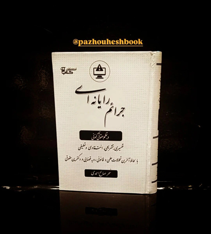 به تالیف سحر صالح احمدی تفسیری، تشریحی، انتقادی و تطبیقی با لحاظ آخرین تحوّلات علمی و قانونی، رویه قضایی و دکترین حقوقی این کتاب مشتمل بر فصول : از قانون جرائم رایانه ای مصوب 1388 از قانون تجارت الکترونیکی مصوب 1382 قانون نحوه مجازات اشخاصی که در امور سمعی و بصری فالیتهای غیرمجاز می نمایند 1386 از قانون حمایت از حقوق پدیدآورندگان نرم افزارهای رایانه ای مصوب 1379 از قانون آیین دادرسی کیفری مصوب 1392 ثبت ۰۹۹۱۸۹۹۰۵۰۷ @pazhouheshbook