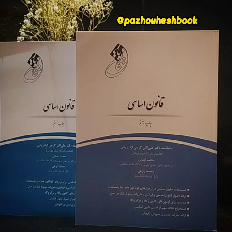 «قانون یار قانون اساسی» تالیف مشترک محمد ایمانی و رحمت زارعی است. کتاب قانون اساسی ایمانی در دو دفتر تالیف شده است. در دفتر اول، مولف به کلیات حقوق اساسی پرداخته است. دفتر دوم به تشریح اصول قانون اساسی جمهوری اسلامی اختصاص دارد. در انتهای هر فصل سوالات ترکیبی و پاسخنامه آن گنجانده شده است.. ثبت ۰۹۹۱۸۹۹۰۵۰۷ @pazhouheshbook