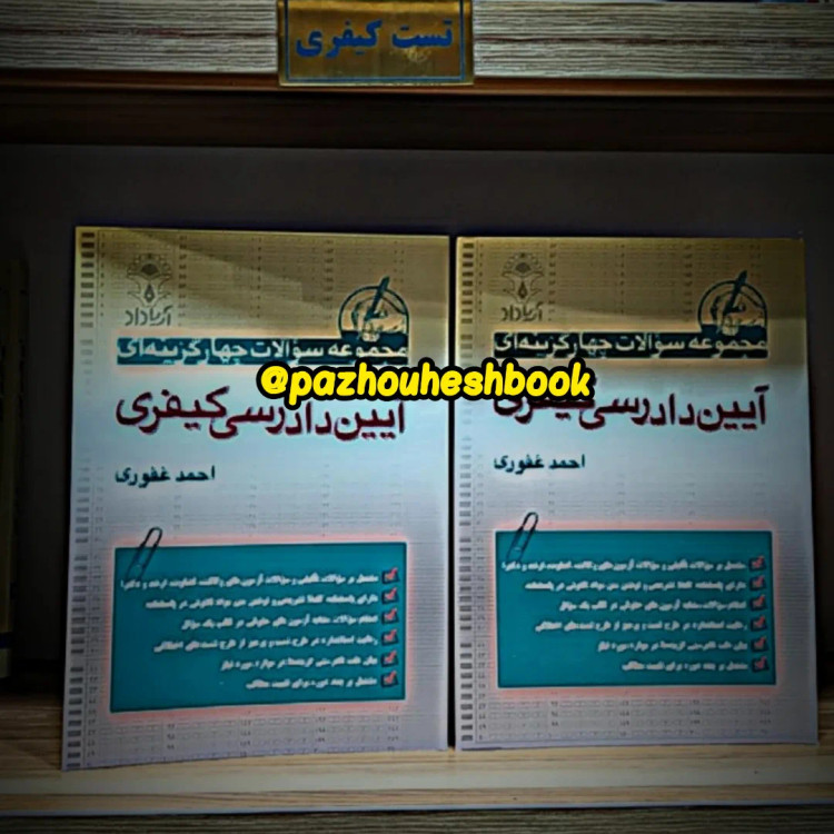 مجموعه سوالات چهارگزینه ای آیین دادرسی کیفری نوشته احمد غفوری شامل تست های تالیفی و سنوات گذشته طبقه بندی براساس مواد قانونی همراه با پاسخ تشریحی میباشد. نگارنده سوالات آیین دادرسی کیفری سنوات گذشته آزمون های وکالت، قضاوت، کارشناسی ارشد و دکتری حقوق در کنار تست های تالیفی خویش گردآوری کرده است. پاسخنامه سوالات کاملا تشریحی و مستدل به مواد قانونی میباشد. سعی شده است، علاوه بر ارائه پاسخ صحیح علت نادرستی گزینه ها نیز بیان شود. ثبت ۰۹۹۱۸۹۹۰۵۰۷ @pazhouheshbook