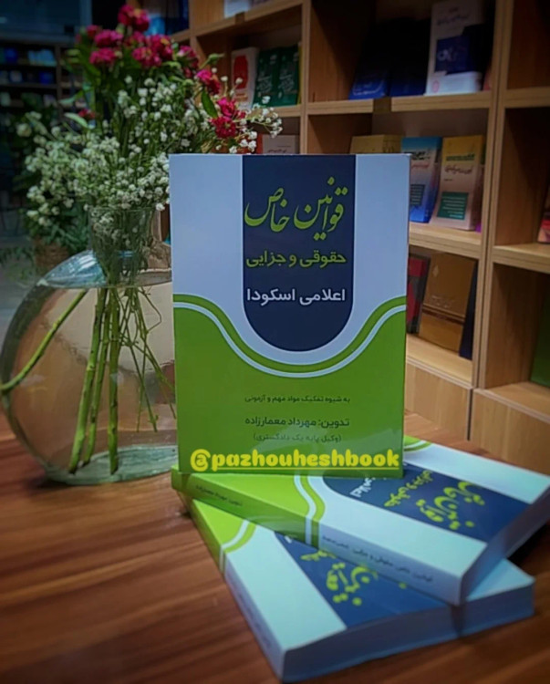 قوانین خاص حقوقی و جزایی اعلامی اسکودا به شیوه ی تفکیک مواد مهم آزمونی به تالیف مهرداد معمارزاده یکی از دلایلی که این کتاب را متمایز میکند این است که مواد مهم در این کتاب با فونت متفاوت مشخص شده اند تا در هنگام مطالعه آن مواد را با دقت بیشتری مطالعه کنید. ثبت ۰۰۹۱۸۹۹۰۵۰۷ pazhouheshbook.ir